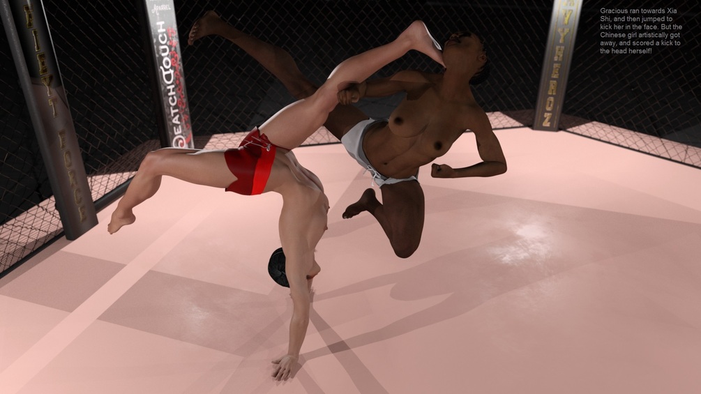 After watching the Chinese Xia Shi Cheung fight a Japanese gangster in Hongkong, the owner of the aircraft carrier "SS Keiko" invites her to join his fighter team. But before she would be accepted in the team she would have to prove herself against Gracious Redz, a member of the "SS Keiko" fighter team. Two fights are scheduled on the same day, boxing in the morning, freestyle in the evening. Besides fighting Gracious, Xia Shi makes the girlfriend of the carrier's owner her enemy. Watch her succeed or fail in 100 high quality Full HD pictures on 100 pages.